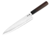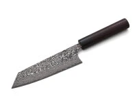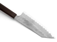 ist das typisch japanisches Allzweckmesser, ursprünglich für Fischer entwickelt. Es ist sehr vielseitig für Fleisch, Fisch und Gemüse einsetzbar. Auch für einen ziehenden Filetierschnitt. Die Klinge hat einen Schneidkern aus Aogami super Stahl. Sehr markant ist das Hammering, individuell von Hand ausgeführt, so dass jedes Messer ein Unikat ist. Der Griff besteht aus echtem Hirschhorn und liegt bemerkenswert gut in der Hand. Das Messer ist dadurch etwas schwerer und der Schwerpunkt ist leicht nach hinten verschoben, bleibt aber wendig und sehr angenehm in der Handhabung. Nigara Hamono ist ein legendärer Name in Japan mit sehr langer, über 300 Jahre alter Tradition in der Fertigung von Schwertern und Messern. Seit 8 Generationen kommen aus dieser Schmiede Schneidwerkzeuge höchster Güte.