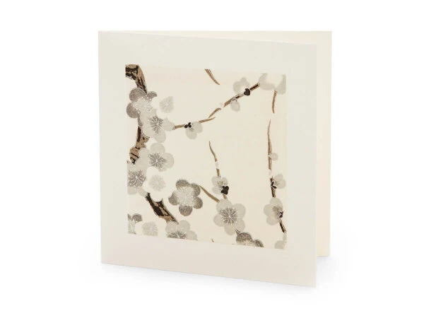 Doppelkarte aus Rivoli mit Chiyogami, Motiv Blütenäste, veredelt. Inklusive Kuvert.