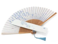 Handfächer Kiyomi – Ein Kunstwerk der Stille und Schönheit. Der Handfächer „Kiyomi“ ist ein Meisterwerk, das die Eleganz der japanischen Natur in einem einzigen, harmonischen Moment einfängt. Mit einer Steglänge von rund 21 cm vereint dieser Fächer die Robustheit von Bambus mit der sanften Anmut von Baumwolle, um eine Szene von atemberaubender Ruhe zu kreieren. Der Bezug aus feiner Baumwolle bildet die Leinwand für ein zartes Kunstwerk: Kirschblüten, die in blassen, fast traumhaften Farben erblühen. Diese Darstellung ist nicht nur eine Hommage an die Schönheit der Natur, sondern auch ein Symbol für die Vergänglichkeit und die zeitlose Schönheit des Lebens. Die Kirschblüten, die durch die vier Jahreszeiten hindurch in einem leichten Dunst schimmern, sind in sanften Farbtönen auf dem Fächer abgebildet. Sie blühen sanft auf, mit einer Leichtigkeit und Farbnuance, die fast wie ein zarter Hauch erscheinen. Das Motiv der blühenden Kirschblüten, ergänzt durch das sanft fließende Wasser, wird in weichen Farben auf der Baumwollfächeroberfläche zum Leben erweckt. Der Rand des Fächers ist mit einer subtilen Farbschattierung versehen, die den Eindruck erweckt, als würde sich der Duft der Blüten verbreiten, sobald der Fächer sich im Wind bewegt. Der Handfächer „Kiyomi“ ist mehr als ein Accessoire – er ist ein Fenster in eine Welt der Stille und Schönheit, ein Spiegel der japanischen Kultur und ein treuer Begleiter für Momente der Besinnung und des inneren Friedens. Mit Kiyomi in der Hand erleben Sie eine flüchtige, aber unvergessliche Berührung mit der Natur. Die Fächer werden zusammen mit einem passenden, bestickten Baumwoll-Etui in einer Kartonbox geliefert.