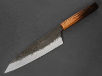 Das Homura Guren Kengata Chef 225 ist das große, aber nicht zu große Allzweckmesser der Messerserie. Es ist kein Leichtgewicht, eher robust und braucht deshalb auch eine etwas kräftigere Hand, um es über längere Zeit sicher zu führen.