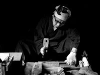 der Marke Sakai Takayuki ist aus der Premium-Serie Homura. Geschmiedet wurde es vom Schmiedemeister Itsuo Doi san, für den Schliff der Klinge ist der Meister Suogo Yamatsuka san verantwortlich. Beide Meister sind Ehrenpreisträger des japanischen Handelsministeriums. Die Klinge besteht aus Aogami 2 Kohlenstoffstahl, dem berühmten blauen Papierstahl und ist für Rechts- und Linkshänder beidseitig geschliffen. Der Griff ist aus edlem