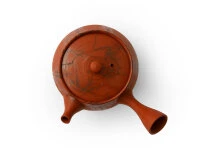 begeistert Kenner mit ihrer zierlichen Anmut aber auch mit der Geschmacksverbesserung für den Grünen Tee, die diesen Kannen eigen ist. Gyokko ist einer der bekanntesten Meister dieser Kunst. Er verwendet ausschließlich natürlichen, mineralstoffreichen Ton aus Tokoname, der bei hohen Temperaturen gebrannt werden kann. Die schöne Teekanne wiegt ca. 180 Gramm und fasst ungefähr 200 ml, ideal für 1-2 Personen. Die ziegelroten Teeschalen Muji Shu von Meister Gyokko passen wunderbar zur Mokake Shu.