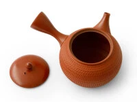 ist in 2 Größen erhältlich, verfügt über ein integriertes Keramiksieb, fasst ca. 350/580 ml und wiegt etwa 225/285 g. Die Teekanne wie auch das Sieb wurden vom Meister Gyokko aus natürlichem Ton auf der Töpferscheibe hergestellt. Gyokko ist einer der bekanntesten Meister dieser Kunst. Er verwendet ausschließlich natürlichen, mineralstoffreichen Ton aus Tokoname, der bei hohen Temperaturen gebrannt werden kann. Die Tobikanna Shu wurde im Oxidations-Verfahren gebrannt. Seine sehr detaillierten Muster sind oft Vorlage für Kopierversuche, was in Japan als großes Kompliment gilt. Die schöne Teekanne ist sehr gut mit den Teeschalen Muji Shu von Meister Gyokko kombinierbar.