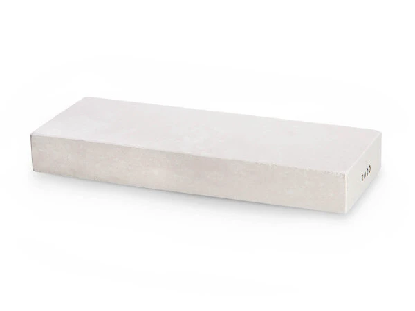 Wasserstein der Manufaktur Miyagoshi Seito aus Kyoto. Hergestellt im Vitrified-Verfahren (Verglasung) mit sehr hochwertigem Schleifmittel Aluminiumoxid und Zirkonoxid und keramischem Hochtemperatur-Bindemittel. Die mittlere Partikelgröße liegt bei ca. 6,7µ, der Schleifstein ist eher hart, sehr widerstandsfähig, nutzt sich wenig ab. Mit der Körnung 2000 liegt der Schleifstein bereits im Bereich Finishing, damit ist er sehr gut geeignet, um gepflegte Messer mit einem feinen Schliff zu versorgen. Die Wassersteine von Miyagoshi sind sowohl für harte Karbonstähle wie auch für Edelstähle bestens geeignet.
