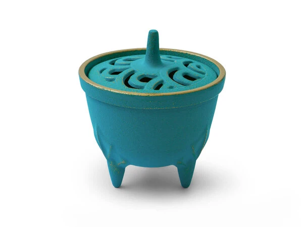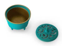 Produktdetails für „Japanisches Räuchergefäß Sakura, Gusseisen türkis“