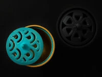 Dies ist die einfachste Art, seine Räume mit aromatischen Düften zu füllen. Füllen Sie etwas Sand – alternativ Granulat oder Asche – in das Gefäß. Räucherkegel und Räucherspiralen legen Sie bitte direkt auf den Sand, zünden diese an und schließen den Deckel. Die Räucherstäbchen arrangieren Sie am besten bei geschlossenem Deckel durch die dafür vorgesehenen Öffnungen.