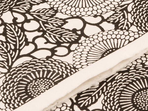 Japanpapier Katazome, Blüten Und Ranken S/w