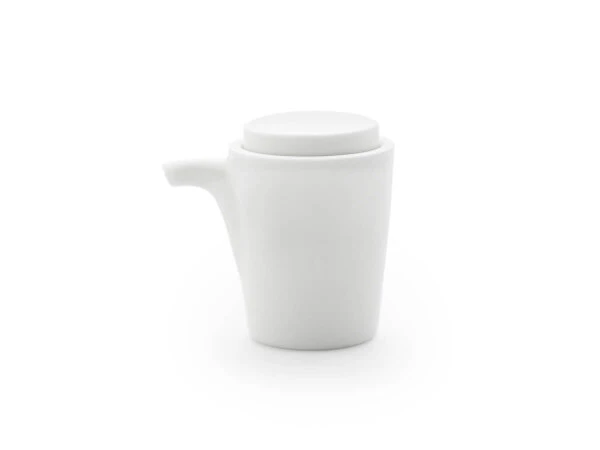 Soßenkännchen Shikika für Sojasoße. Gefertigt in Japan aus japanischem Porzellan. Es fasst ca. 75 ml. Das Weiß ist leicht gebrochen. Um das Ausgießverhalten zu verbessern, befindet sich oben, gegenüber dem Ausgießer eine kleines Luftlöchlein. Der Aufkleber Shikika kann entfernt werden.
