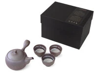 und drei zierlichen Teeschalen. Das sehr lebendige Tee-Geschirr ist aus dem berühmten, natürlichen Ton der Mie Präfektur hergestellt. Seit vielen hundert Jahren wird in dieser Präfektur hochwertige Keramik aus Ton von Kunsthandwerkern in aufwändiger Handarbeit erstellt. Der lilafarbene Ton ist sehr reich an Eisen und Mineralien und gehört zu den wertvollsten Rohstoffen für Teegeschirr. Besonders bei Genießern von erstklassigem Grünen Tee wie Gyokuro, Kabusecha und edlem Sencha, ist die Banko Keramik heiß begehrt. Hiroshi Suigetsu gehört zu den großen Künstlern der traditionellen, japanischen Keramikfertigung. Als dritter Meister führt er seit vielen Jahren den Keramikverband in Yokkaichi, seine beeindruckende Laufbahn ist begleitet von vielen Ehrungen und Auszeichnungen. Die